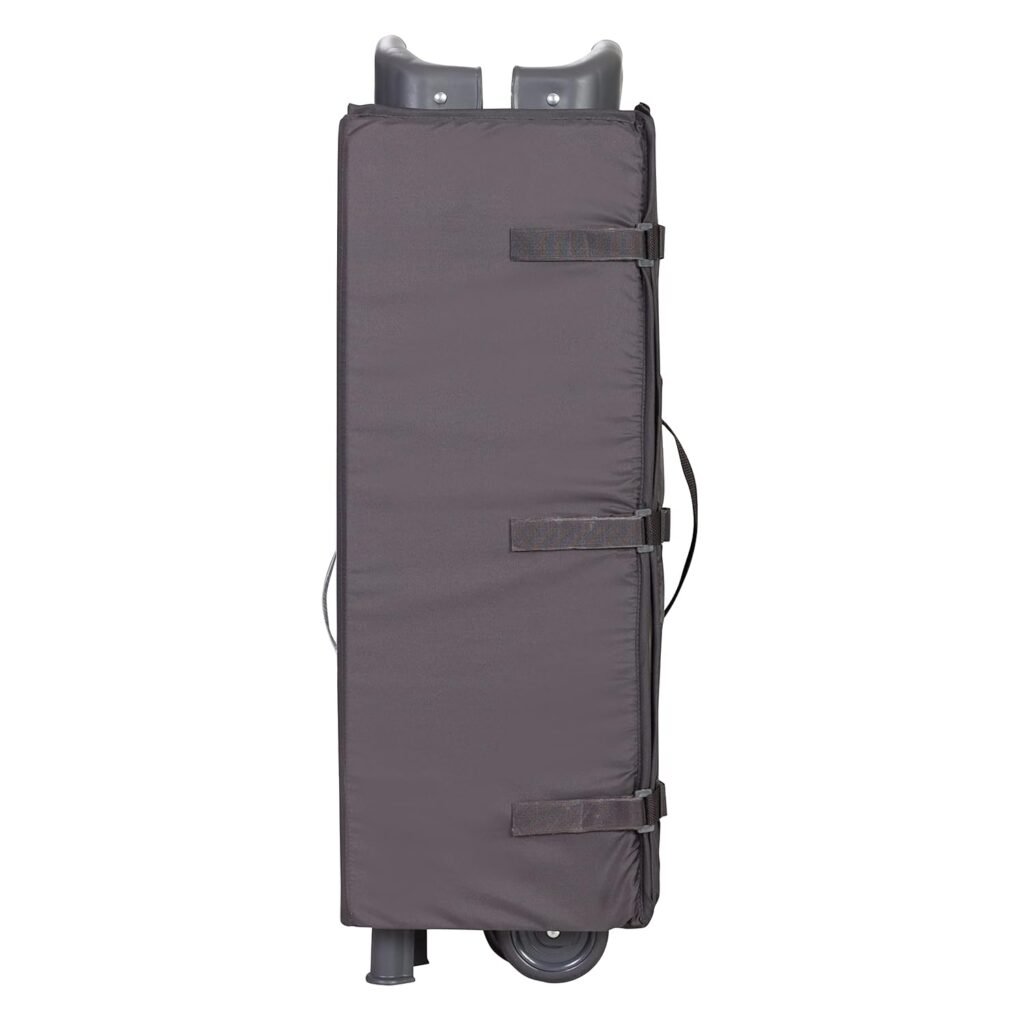 When it’s time to store or travel, the unit folds compactly. The mattress pad wraps around the frame, and everything fits into the included travel bag. This compact fold makes it easy to store in closets, car trunks, or luggage.