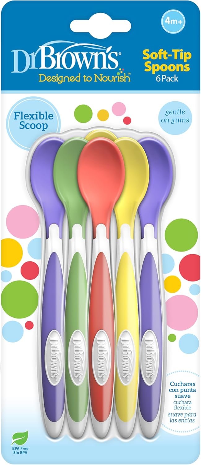 The Dr. Brown’s Soft-Tip Toddler Feeding Spoons are designed to make early feeding gentle and easy. Featuring a soft, flexible tip that’s safe for sensitive gums and a long ergonomic handle for better control, these BPA-free spoons are perfect for introducing solids to babies 4 months and up.